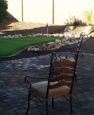 Golf anyone? How about a backyard putting green? We can install a putting green complete with a chipping pad, a few hills, and even a sand pit for a little challenge. Practice your game while sitting in your own backyard on your private patio. We can customize the putting green to fit your needs and ... Read More about Backyard Landscaping Putting Green